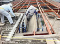 ・1㎡あたり1kg弱と極めて軽量なため、屋根の重量負荷が少なく、特殊補強材の硬化後は、高い強度を有する為、躯体の補強が最小限に抑えられます。